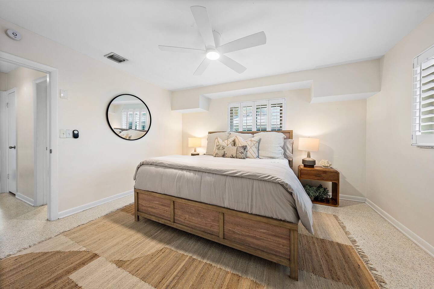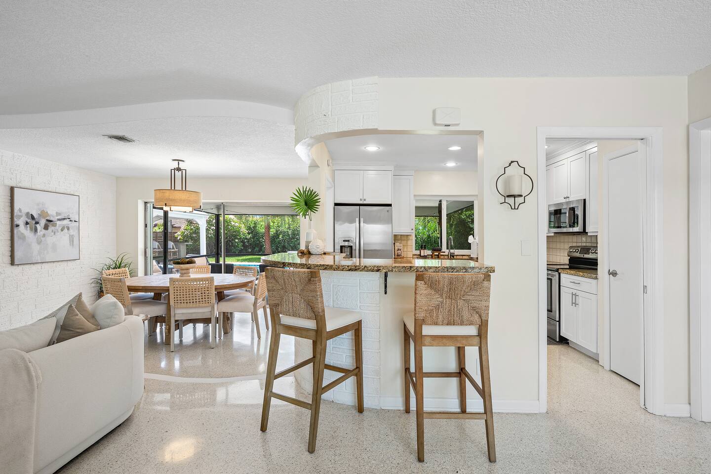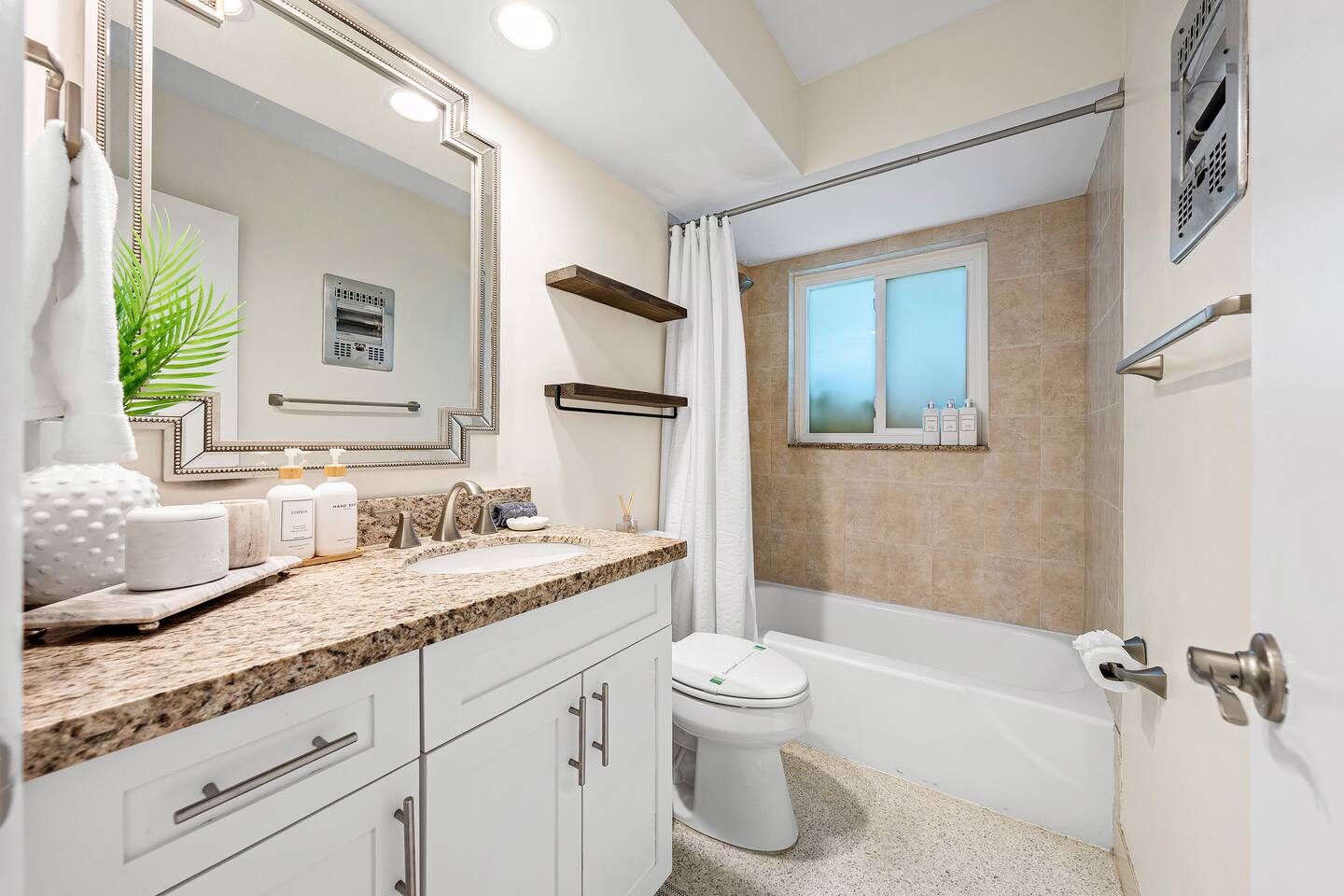This beautifully updated vacation home blends modern coastal charm with the warm, welcoming vibe of a family-friendly neighborhood. Tucked away in a quiet, palm-fringed community, this retreat is just minutes from sandy beaches, top-tier golf courses, and lively local spots for dining and shopping. Step into a breezy, modern coastal interior with soothing tans, crisp whites, and natural wood accents that evoke the essence of the coast. The kitchen is fully equipped for large family meals, featuring a breakfast bar, quartz countertops, and a spacious island perfect for family breakfasts or casual gatherings. The bedrooms include a main en-suite with a king bed, a smart TV, and ample closet space. The guest bedroom comfortably sleeps four adults with two full-size beds and a smart TV. The guest bathroom features a shower-tub combo, while the main bedroom suite offers a walk-in shower. Outside, your private backyard oasis awaits. Dive into the sparkling heated pool, gather around the fire pit for s’mores under the stars, or relax on the breezy patio surrounded by lush tropical landscaping. High-speed Wi-Fi, smart TVs, and a premium sound system keep everyone connected and entertained. Nestled in the heart of family-friendly Palm Beach Gardens, you’re steps from safe, tree-lined streets and a short drive from the Gardens Mall, PGA National Resort, and the serene shores of Juno Beach. Perfect for family adventures or laid-back coastal vibes, this modern retreat is your home-away-from-home for an unforgettable Florida getaway.