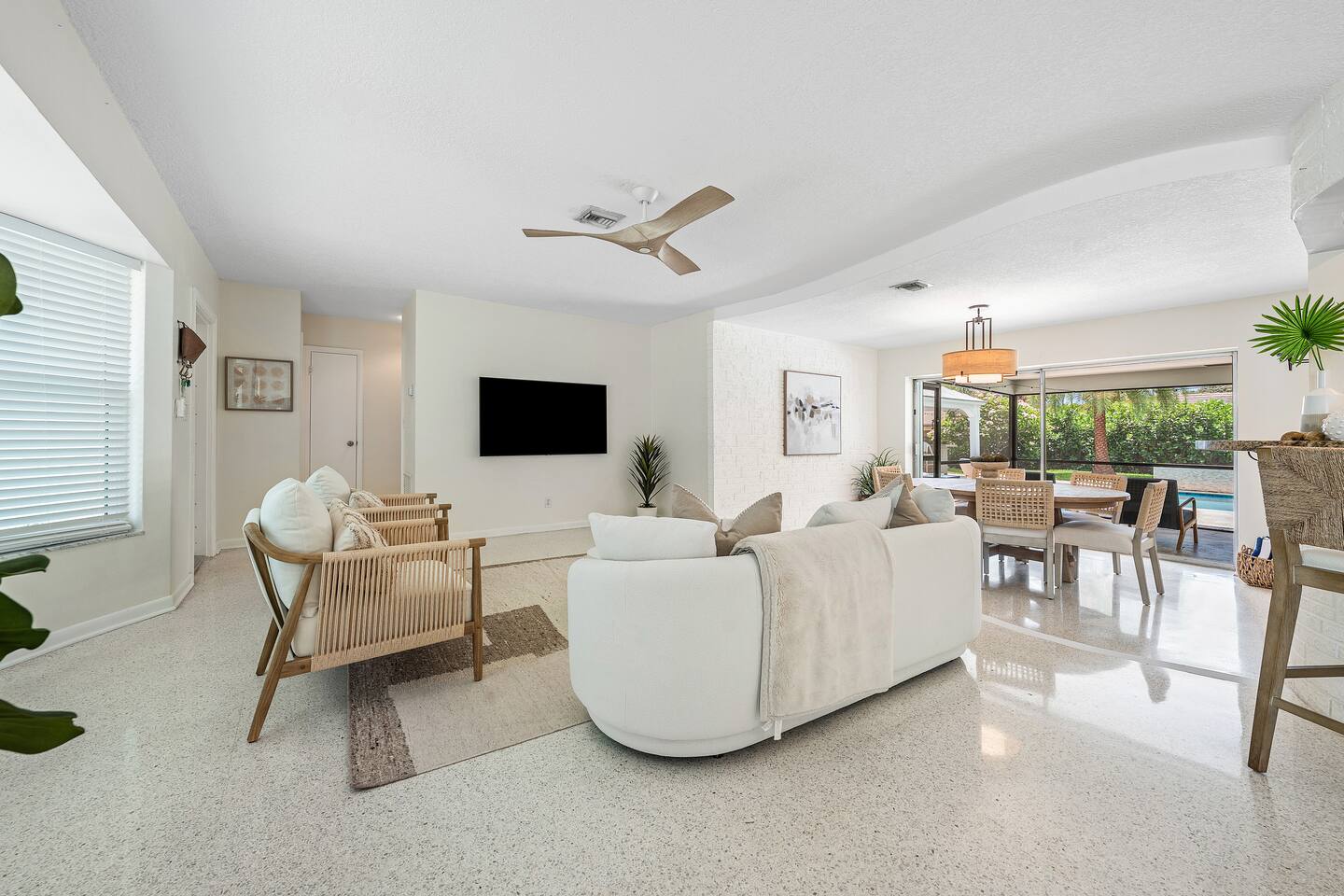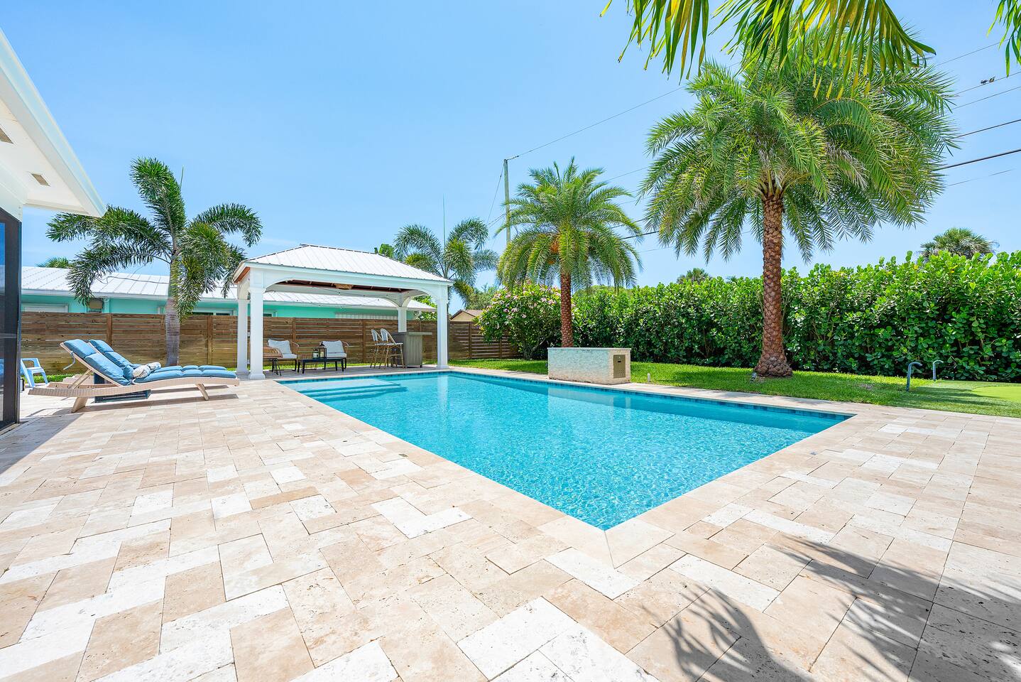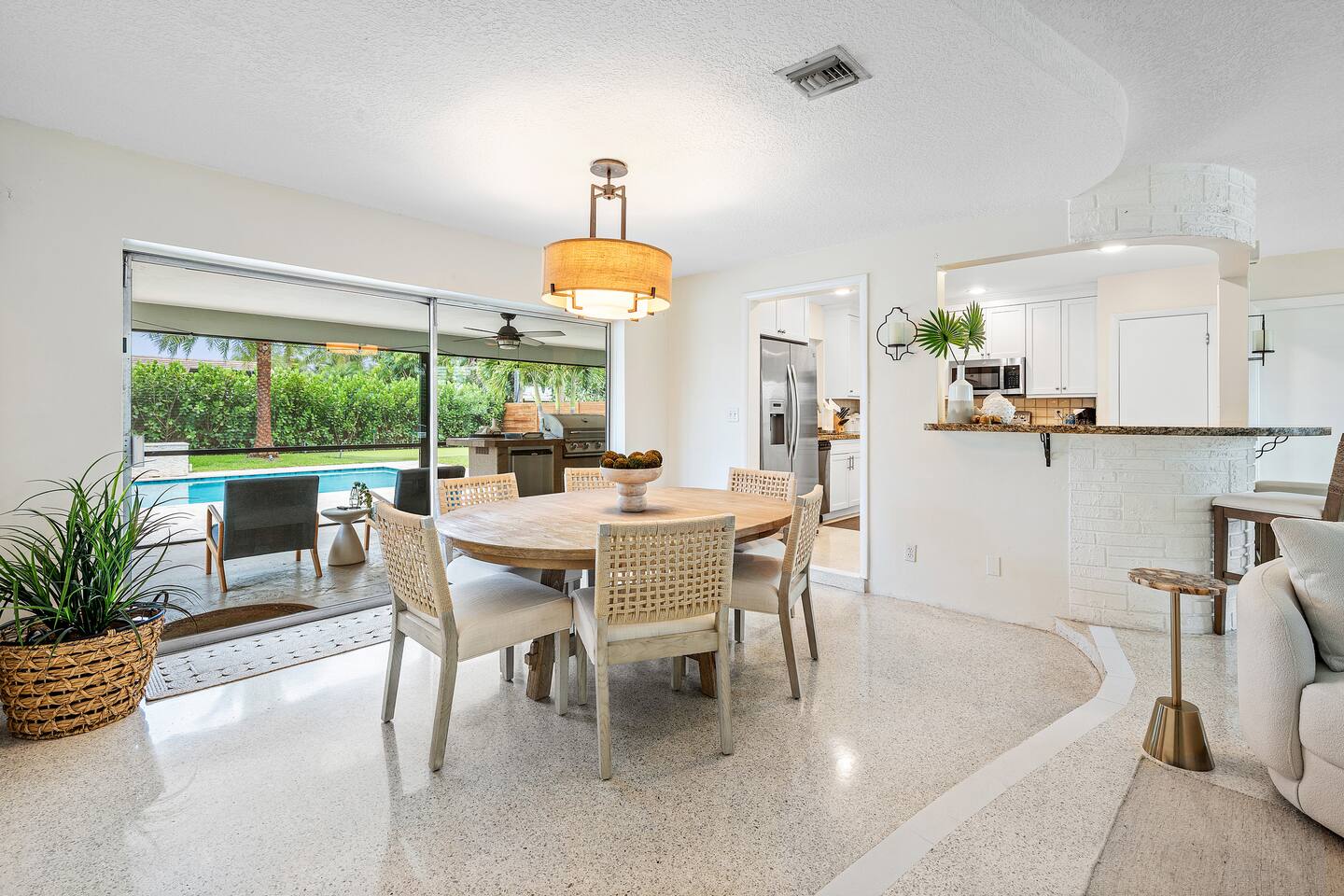 This beautifully updated vacation home blends modern coastal charm with the warm, welcoming vibe of a family-friendly neighborhood. Tucked away in a quiet, palm-fringed community, this retreat is just minutes from sandy beaches, top-tier golf courses, and lively local spots for dining and shopping. Step into a breezy, modern coastal interior with soothing tans, crisp whites, and natural wood accents that evoke the essence of the coast. The kitchen is fully equipped for large family meals, featuring a breakfast bar, quartz countertops, and a spacious island perfect for family breakfasts or casual gatherings. The bedrooms include a main en-suite with a king bed, a smart TV, and ample closet space. The guest bedroom comfortably sleeps four adults with two full-size beds and a smart TV. The guest bathroom features a shower-tub combo, while the main bedroom suite offers a walk-in shower. Outside, your private backyard oasis awaits. Dive into the sparkling heated pool, gather around the fire pit for s’mores under the stars, or relax on the breezy patio surrounded by lush tropical landscaping. High-speed Wi-Fi, smart TVs, and a premium sound system keep everyone connected and entertained. Nestled in the heart of family-friendly Palm Beach Gardens, you’re steps from safe, tree-lined streets and a short drive from the Gardens Mall, PGA National Resort, and the serene shores of Juno Beach. Perfect for family adventures or laid-back coastal vibes, this modern retreat is your home-away-from-home for an unforgettable Florida getaway.