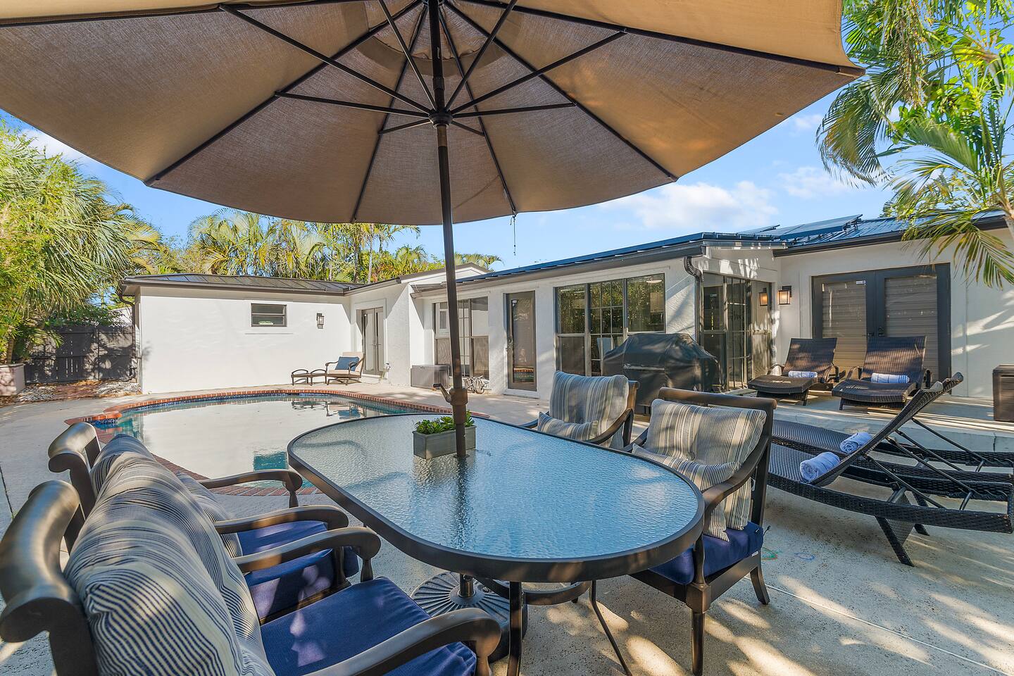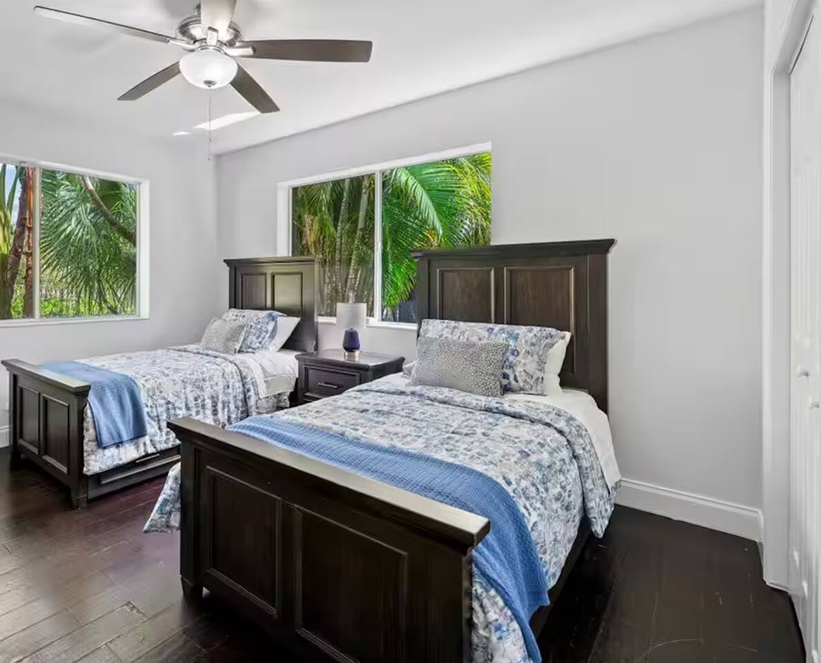 Your private West Palm Beach oasis pairs a heated salt-water pool, bubbling hot-tub and sunny patio just 5 min from Clematis. 4 spacious bedrooms (2 king, 1 queen, 2-singles) Fast Wi-Fi & dedicated workspace Chef-ready kitchen + BBQ Free parking for 3 cars Beach chairs, towels & toys for the family Book now and float under the palms!