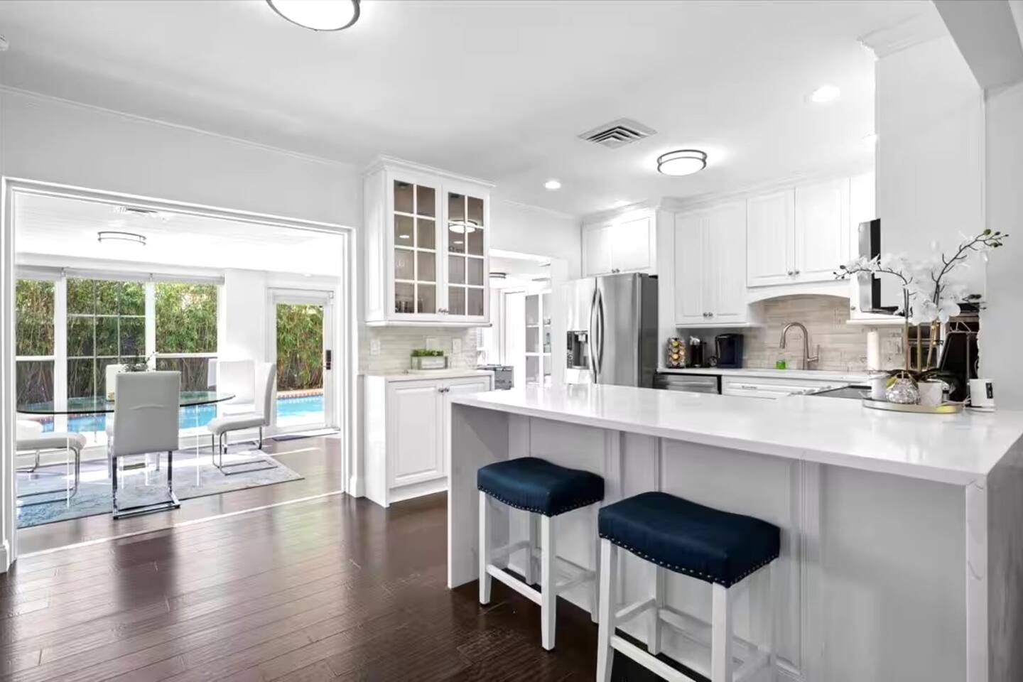 This stunning 4-bedroom, 3-bathroom home combines modern style with beachy charm, offering ample space for a relaxing getaway. Indulge in the ultimate coastal luxury in the charming historic community located West Palm Beach, FL. This exquisite 4-bedroom, 3- bathroom home offers a perfect blend of refined elegance and modern design, providing a sophisticated escape just minutes from the beach. The property offers 2 King Beds, 2 Twin size Beds and 1 Queen size bed. Two of the bedrooms have private en-suite bathrooms. The kitchen is equipped with everything you'll need to prepare every meal while on your vacation. The indoor dining room overlooks the saltwater pool area or you sit al fresco in our tropical backyard while you grill and sip on your margaritas. On chilly nights, we'll heat the pool for you. The outdoor space is nothing short of spectacular. Whether you’re relaxing by the pool, soaking in the hot tub, or hosting a sunset barbecue, the lush, tropical backyard is your personal oasis. The main suite is a sanctuary of comfort, featuring a king-sized bed, elegant décor, and a spa-inspired en-suite bathroom with luxurious finishes. Each of the additional bedrooms is meticulously designed with high-end furnishings and plush bedding, ensuring a restful and rejuvenating stay. The bathrooms are equipped with premium toiletries, plush towels, and designer fixtures. Located just moments from the beach and West Palm Beach’s finest dining, shopping, and cultural attractions, this home is an unparalleled retreat for those seeking both relaxation and adventure. Experience the very best in luxury living and make this stunning property your next unforgettable getaway.